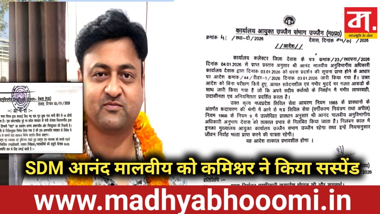 MP News : विवादित भाषा वाला सरकारी आदेश पड़ा भारी, देवास SDM आनंद मालवीय को कमिश्नर ने किया सस्पेंड