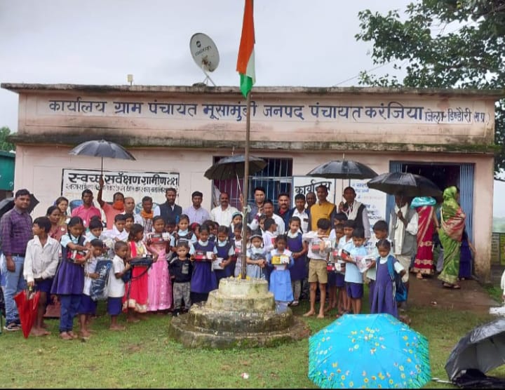 सरपंच ने जरूरतमंद स्कूली बच्चों को बांटे बैग और जूते