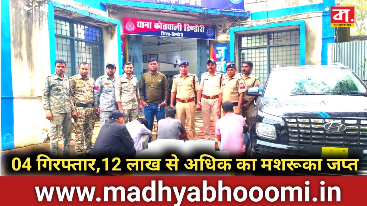 Dindori Crime News: अवैध शराब तस्करों पर पुलिस का शिकंजा,04 आरोपी गिरफ्तार, 12 लाख से अधिक का मशरूका जप्त