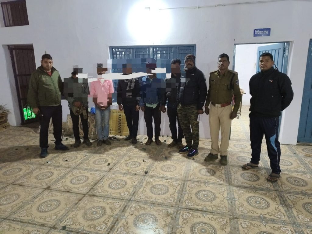 जो कुछ लोग अंधेले का फायदा उठाकर भाग गये तथा 05 व्यक्ति जिन्हे पकड कर नाम पता पूछने पर अपना अपना नाम (1) विनोद कुमार पिता श्याम सुन्दर यादव उम्र 35 साल निवासी चांदकिकरिया थाना समनापुर (2) अंकेश कुमार पिता द्वारका सिह प्रजापति उम्र 27 साल निवासी पिण्डरूखी थाना गाडासरई (3) रामप्रसाद पिता ननसू लाल विश्वकर्मा उम्र 37 साल निवासी चांदकिकरिया थाना समनापुर (4) तिलोक राम पिता केहर सिह प्रजापति उम्र 22 साल निवासी डुंगारिया चौकी अमरपुर (5) राजेन्द्र पिता रामकुमार धुर्वे उम्र 30 साल निवासी चांदकिकरिया थाना समनापुर जिला डिण्डौरी बताये उक्त सभी व्यक्तियो से जिनके कब्जे से तीन नग लकडी के गोटिया, एक चिन्ह वाला फट्टा, एक डब्बा, कुल नगदी 4200 रूपये जप्त किया गया । आरोपियों का कृत्य धारा 13 जुआ एक्ट कायम कर विवेचना में लिया गया। उपरोक्त कार्यवाही में चौकी प्रभारी अमरपुर सउनि अतुल हरदहा, सउनि अशोक उसराठे, प्रआर0 366 संतोष कुमार मरावी, प्रआर0 232 सुदेश कोकडिया, आर0 59 अजीत कुमार, आर0 156 उमेश प्रसाद मार्को, गौ०सै० केहर सिह की सराहनीय भूमिका रही।