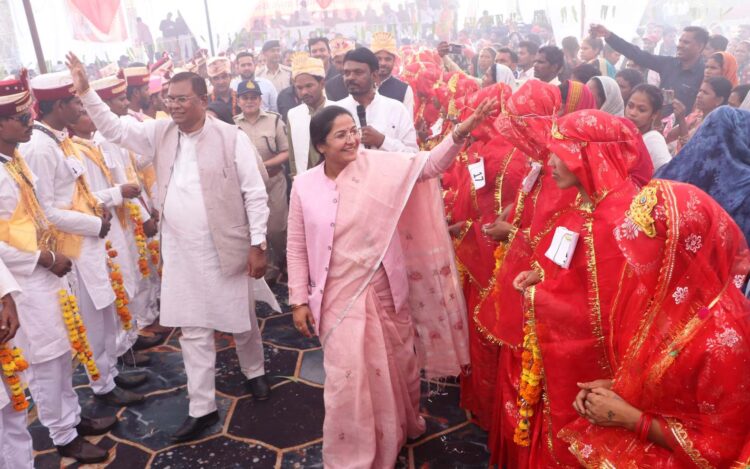 मुख्यमंत्री कन्या विवाह योजना के सामूहिक विवाह समारोह में उपस्थित जनप्रतिनिधियों ने कार्यक्रम को संबोधित करते हुए कि वर-बधुओं को शुभकामनाएं दी।