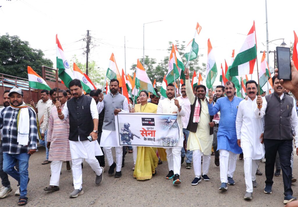 डिंडौरी| आज प्रातः 10 बजे डिंडौरी नगर के नर्मदा डैम घाट, नर्मदागंज से राज्य मंत्री (नगरीय विकास एवं आवास विभाग) एवं जिला प्रभारी मंत्री श्रीमती प्रतिमा बागरी के नेतृत्व में भव्य तिरंगा यात्रा निकाली गई। इस यात्रा का उद्देश्य देश के वीर सैनिकों को सम्मान देना तथा देशभक्ति की भावना को सशक्त करना था। ’भारत माता की जय’ के नारों से नगर का माहौल देशभक्ति से सराबोर हो गया।
