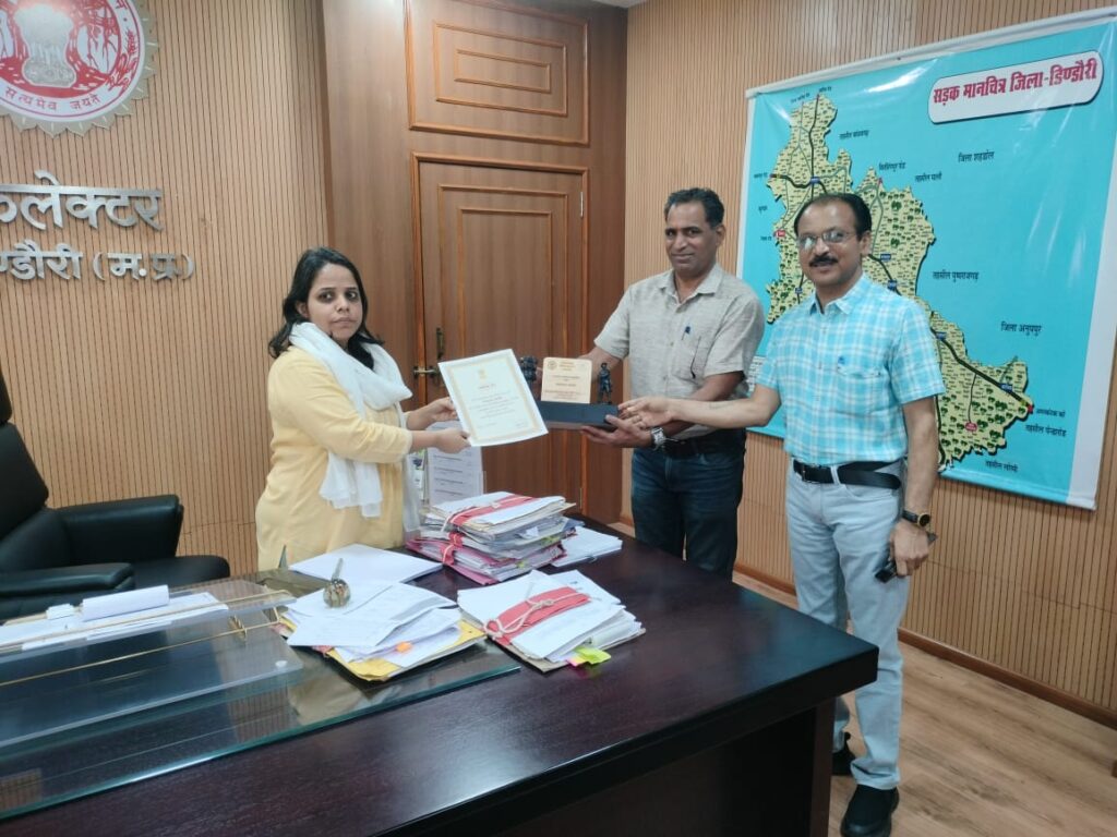 जो लक्ष्य राशि का 126 प्रतिशत है। ट्राफी एवं प्रशंसा पत्र कल्याण संयोजक श्री ओंकार लाल गवली, जिला सैनिक कल्याण कार्यालय शहडोल द्वारा मंगलवार को कलेक्ट्रेट डिंडौरी पहुँचकर कलेक्टर श्रीमती मारव्या को भेंट किया गया। इस अवसर पर डिप्टी कलेक्टर वैधनाथ वासनिक एवं श्री रूपेंद्र कुमार पांडेय की उपस्थित रहे।