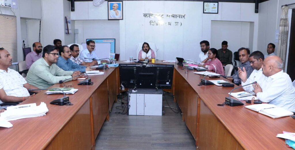Dindori Today News,डिंडौरी न्यूज़। कलेक्टर श्रीमती नेहा मारव्या ने सोमवार को कलेक्ट्रेट सभागार में समय-सीमा बैठक का आयोजन कर जिले के विभिन्न विभागों की गतिविधियों की गहन समीक्षा की। बैठक में अपर कलेक्टर श्री सुनील शुक्ला, डिप्टी कलेक्टर श्री वैधनाथ वासनिक, एसडीएम शहपुरा श्री ऐश्वर्य वर्मा, एसडीएम बजाग श्री रामबाबू देवांगन, एसडीएम डिंडौरी सुश्री भारती मेरावी सहित अन्य जिला अधिकारी उपस्थित रहे। समय सीमा की बैठक में राजस्व, खनिज, कृषि, खाद्य, पर्यटन, शिक्षा, महिला बाल विकास, पंचायत, वन, विद्युत सहित अन्य प्रमुख विभागों के लंबित प्रकरणों, योजनाओं की प्रगति एवं आगामी कार्ययोजना पर विस्तार से चर्चा की गई। उन्होंने अधिकारियों को समस्याओं के शीघ्र और प्रभावी समाधान के निर्देश दिए।