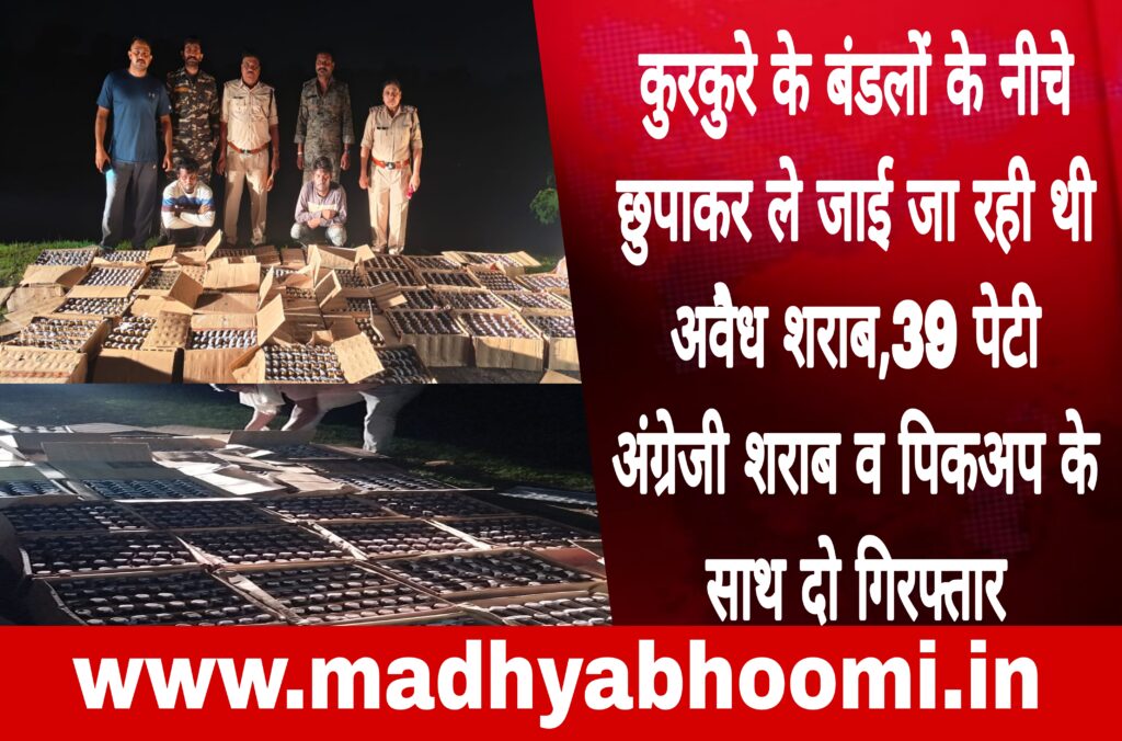 मंडला न्यूज। थाना निवास पुलिस ने अवैध शराब तस्करी के विरुद्ध कार्यवाही करते हुए बड़ी मात्रा में अंग्रेजी शराब तथा परिवहन में प्रयुक्त पिकअप वाहन जप्त किया है। दो आरोपियों को मौके से गिरफ्तार कर उनके विरुद्ध आबकारी अधिनियम के तहत मामला दर्ज किया गया है।