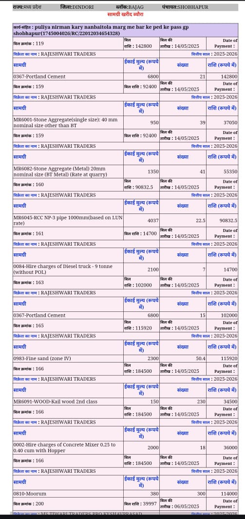 बजाग जनपद पंचायत अंतर्गत ग्राम पंचायत शोभापुर में ऐसा ही मामला सामने आया है, जहां तकनीकी अधिकारियों ने समतल मैदान में 14.99 लाख रुपए की लागत से पुलिया निर्माण कराते हुए शत प्रतिशत भुगतान कर दिया, जिसका टी एस क्रमांक 12/07/2023 है जबकि कार्य स्थल पर नाला या नदी नहीं हैं, बगैर आवश्यकता जबरन लाखों रुपए का दुरुपयोग किया गया है, पुलिया के ऊपर कांक्रीट स्लैब तक नहीं डाला गया है, बेस डेढ़ मीटर खुदाई करने का प्रावधान है लेकिन एक फिट भी गड्ढा नहीं की गई है, यदि मापपुस्तिका और कार्यस्थल का भौतिक सत्यापन कराया जाए तो रिकॉर्ड में 100 फीसदी काम और धरातल में सिर्फ 40 फीसदी काम कर फर्जीवाड़े के जरिए लाखों रुपए हड़पने का राज खुल सकता हैं। एक बार फिर 2024 में नान बाई टोला में पहाड़ी के ऊपरी सतह पर तीन रो की पुलिया निर्माण हेतु 14.99 हजार रुपए स्वीकृत कर शासकीय धन का बंदरबांट करने की तैयारी है।
