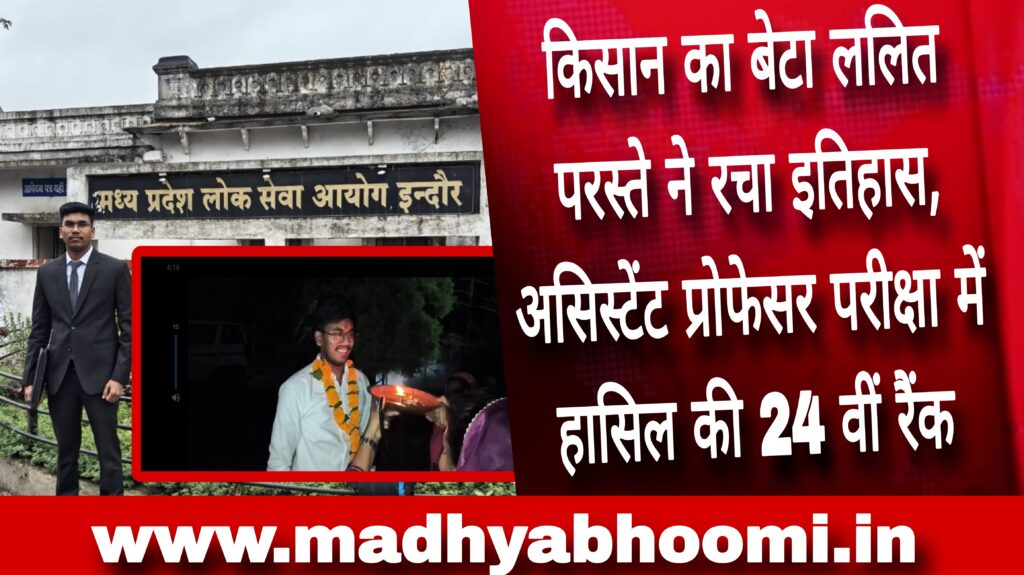डिंडौरी। संसाधनों की कमी कभी सपनों की उड़ान को रोक नहीं सकती, इसे साबित कर दिखाया है अमरपुर विकासखंड के मैनपुरी गांव के किसान परिवार के होनहार पुत्र ललित परस्ते ने। ललित ने मध्यप्रदेश लोक सेवा आयोग द्वारा आयोजित असिस्टेंट प्रोफेसर परीक्षा 2022 में सामान्य श्रेणी में प्रदेशभर में 24वीं रैंक प्राप्त कर जिले और आदिवासी समाज का नाम रोशन किया है।