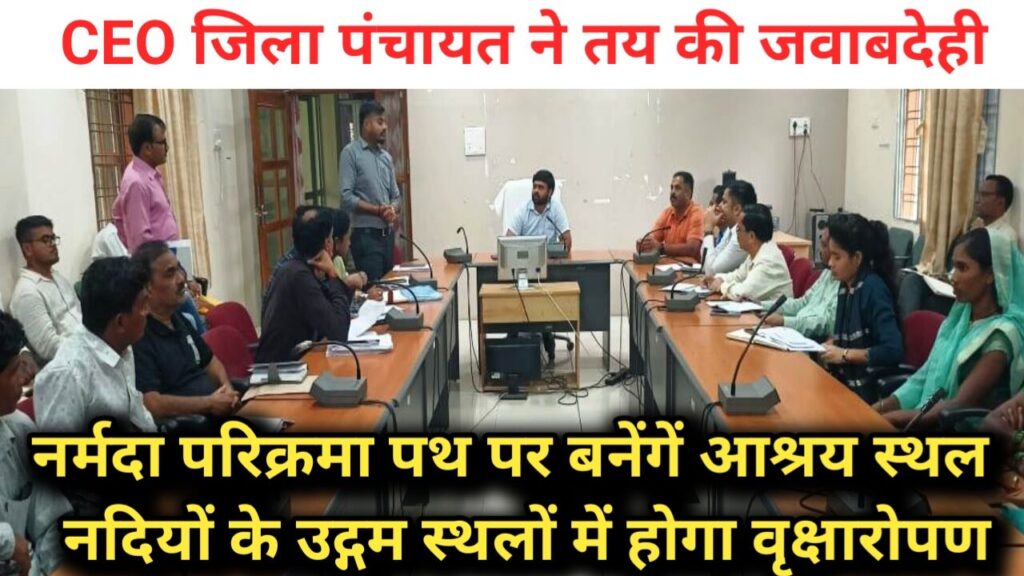 डिंडौरी न्यूज़। नदियों के उद्गम स्थलों पर फेंसिंग, वृक्षारोपण, नर्मदा परिक्रमा पथ पर आश्रय स्थलों पर होगा वृक्षारोपण जिसके लिए पंचायत एंव ग्रामीण विकास विभाग द्वारा तकनीकी एवं प्रशासकीय स्वीकृति जारी जिसकी तैयारियों को लेकर कलेक्टर श्रीमती नेहा मारव्या के मार्गदर्शन में मुख्य कार्यपालन अधिकारी जिला पंचायत अनिल कुमार राठौर ने जिला पंचायत सभाकक्ष में बैठक ली। बैठक के दौरान संबंधित ग्राम पंचायतों के सरपंच, सचिव, ग्राम रोजगार सहायक, उपयंत्री, सहायक यंत्री और मुख्य कार्यपालन अधिकारी जनपद पंचायत उपस्थित रहे।