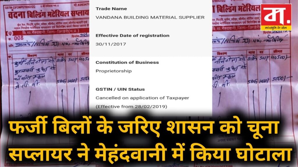 डिंडौरी न्यूज। जिले के मेहंदवानी जनपद पंचायत अंतर्गतकई ग्राम पंचायतों में रिजेक्ट जीएसटी दर्ज नम्बर के बिलों के जरिए पंचायती खजाने से करोड़ों रुपए का सरकारी भुगतान प्राप्त करते हुए शासन की आंख में धूल झोंक कर लाखों रुपए का घोटाला करने का मामला सामने आया है।