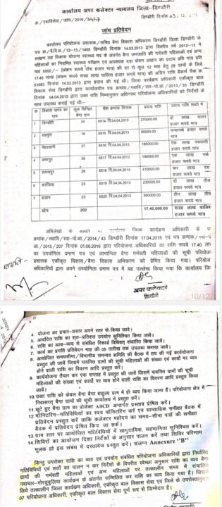 इस संबंध में न्यायालय में दायर परिवाद के अनुसार, योजना के तहत वर्ष 2012-13 में 29 ग्रामों बैगा ग्रामों की महिलाओं को लाभ पहुंचाने हेतु ₹17 लाख 40 हजार की राशि स्वीकृत की गई थी, किंतु संबंधित अधिकारियों द्वारा निर्धारित शर्तों का पालन न करते हुए राशि का उपयोग स्वेच्छानुसार अन्य मदों में किया गया।
