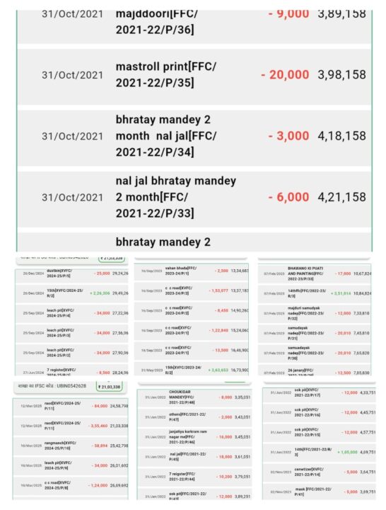 इसी तरह 2022- 23 में भवन पुताई, चाय नाश्ता, वाहन भाड़ा, कर्मचारी मानदेय के नाम पर 65000, बगैर सक्षम स्वीकृति के मुर्मिकरण, सोखता गड्ढा सहित अन्य व्यय के नाम पर लाखों रुपए का भुगतान किया गया, जबकि जिन कार्यों के नाम पर भुगतान किया गया उक्त कार्य जीपीडीपी में भी शामिल नहीं है। सूत्रों की माने तो उक्त कार्य सिर्फ कागजों में हो रहे हैं, सचिव, सरपंच भ्रष्टाचार कर अपनी जेबें भर रहे हैं।