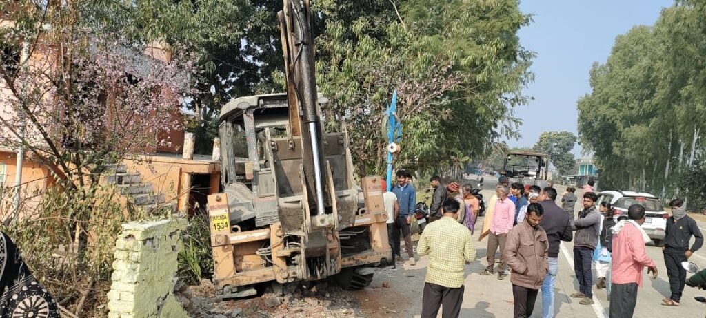 डिंडौरी न्यूज। मध्यप्रदेश के डिंडौरी जिले के गाड़ासराई थाना क्षेत्र अंतर्गत ग्राम खरगहना में जबलपुर–अमरकंटक हाईवे किनारे स्थित शिव मंदिर प्रांगण में एक अनियंत्रित जेसीबी मशीन जा घुसी, जिससे मंदिर को क्षति पहुँची है। घटना के बाद ग्रामीणों में भारी रोष देखा गया। मिली जानकारी के अनुसार, जबलपुर–अमरकंटक हाईवे निर्माण कार्य में लगी एक कंपनी की जेसीबी मशीन कार्य के दौरान नियंत्रण खो बैठी और सीधे मंदिर परिसर में प्रवेश कर गई। ग्रामीणों का आरोप है कि जेसीबी ऑपरेटर की लापरवाही के कारण मंदिर परिसर को नुकसान पहुँचा, जिससे ग्रामीणों की धार्मिक आस्था को ठेस लगी है।
