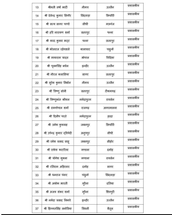 – प्रदेशभर के कई जिलों में बदलाव