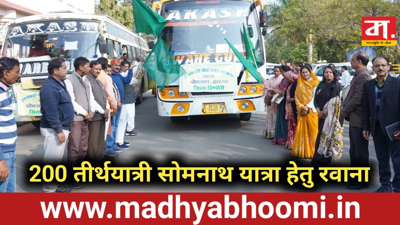 मुख्यमंत्री तीर्थ दर्शन योजना अंतर्गत डिंडौरी जिले के 200 तीर्थयात्री सोमनाथ यात्रा हेतु रवाना