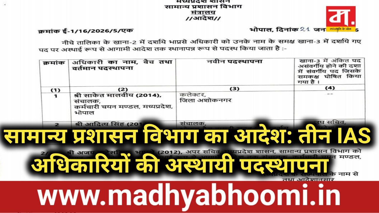 प्रशासनिक फेरबदल : तीन IAS अधिकारियों की अस्थायी पदस्थापना आदेश जारी