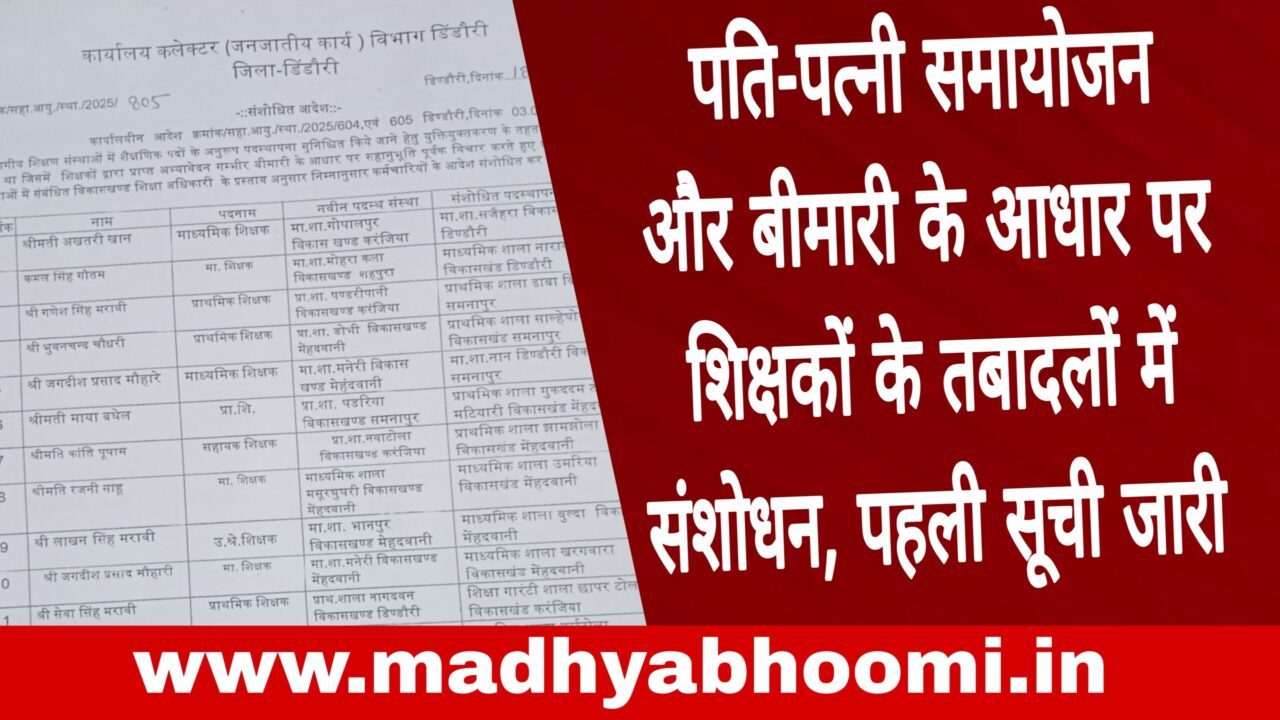 पति-पत्नी समायोजन और बीमारी के आधार पर शिक्षकों के तबादलों में संशोधन, पहली सूची जारी