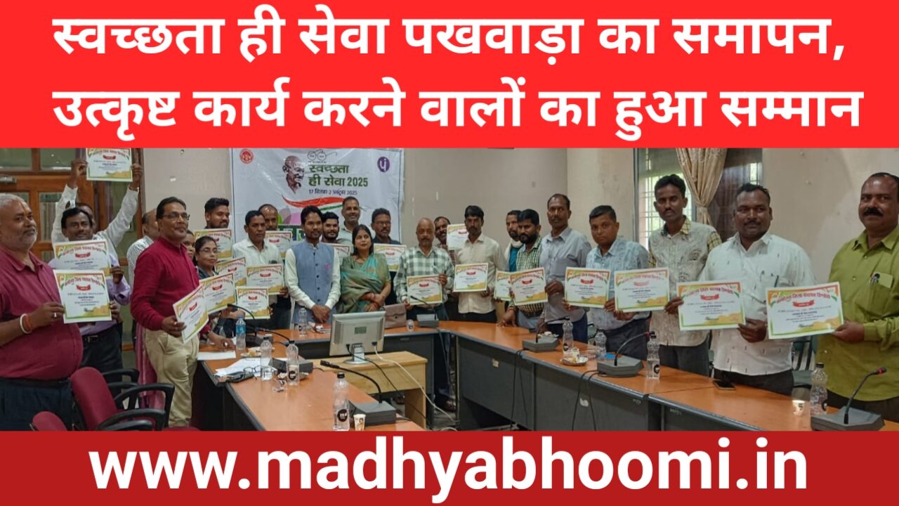 Dindori News: स्वच्छता ही सेवा पखवाड़ा का समापन, उत्कृष्ट कार्य करने वालों का हुआ सम्मान