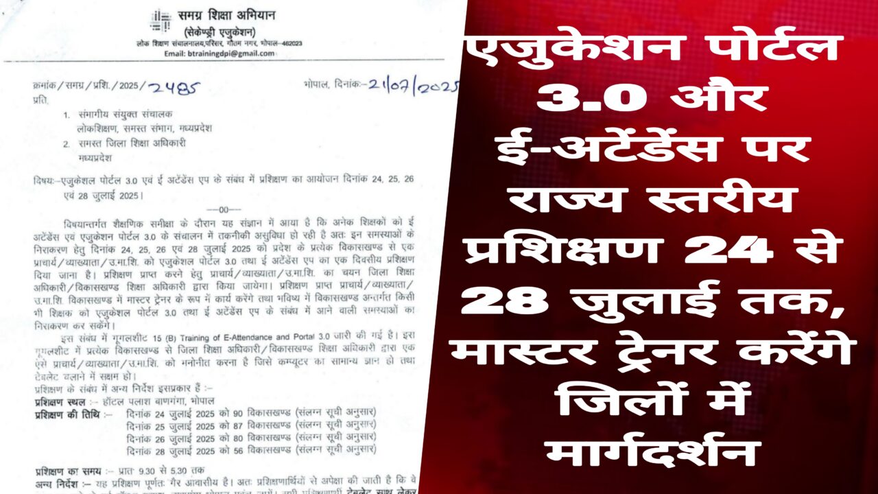 एजुकेशन पोर्टल 3.0 और ई-अटेंडेंस पर राज्य स्तरीय प्रशिक्षण 24 से 28 जुलाई तक, मास्टर ट्रेनर करेंगे जिलों में मार्गदर्शन