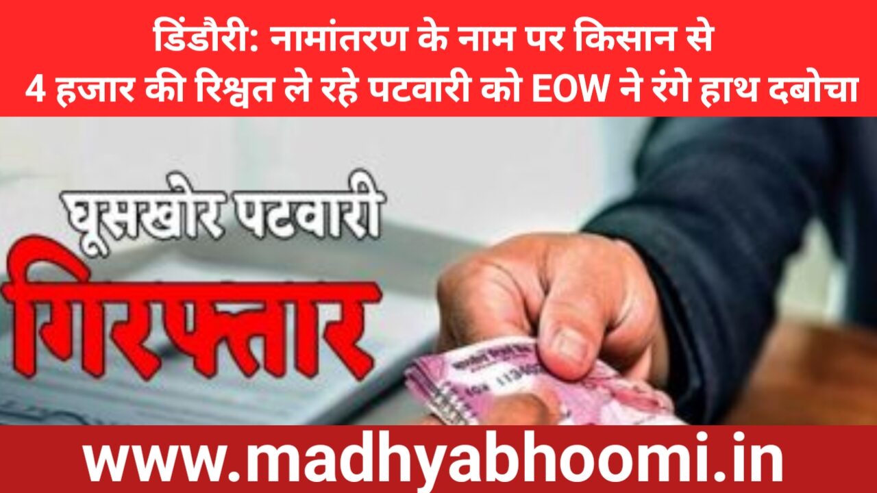 Dindori Today News: नामांतरण के नाम पर किसान से 4 हजार की रिश्वत ले रहे पटवारी को EOW ने रंगे हाथ दबोचा