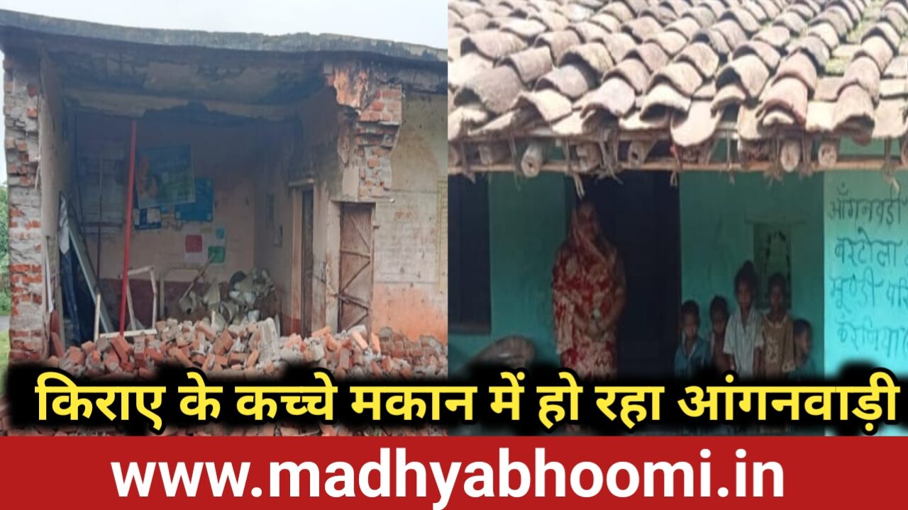 रात्रि में भरभराकर गिरा पुराना जर्जर भवन, बड़ा हादसा टला : किराए के कच्चे मकान में हो रहा आंगनवाड़ी का संचालन