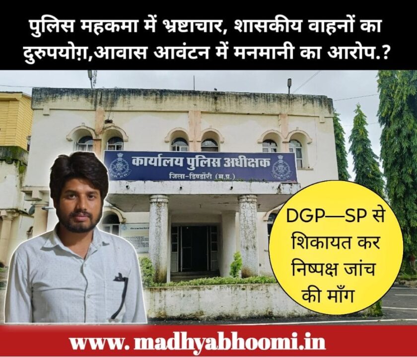 डिंडौरी SP कार्यालय पर सरकारी संसाधनों के दुरुपयोग का आरोप, CM व DGP से उच्चस्तरीय जांच की मांग