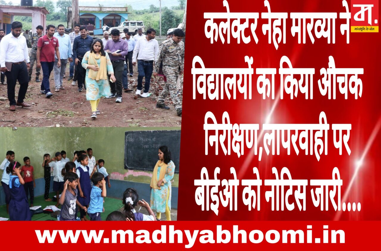Dindori News: कलेक्टर नेहा मारव्या ने विद्यालयों का किया औचक निरीक्षण,लापरवाही पर बीईओ को नोटिस जारी