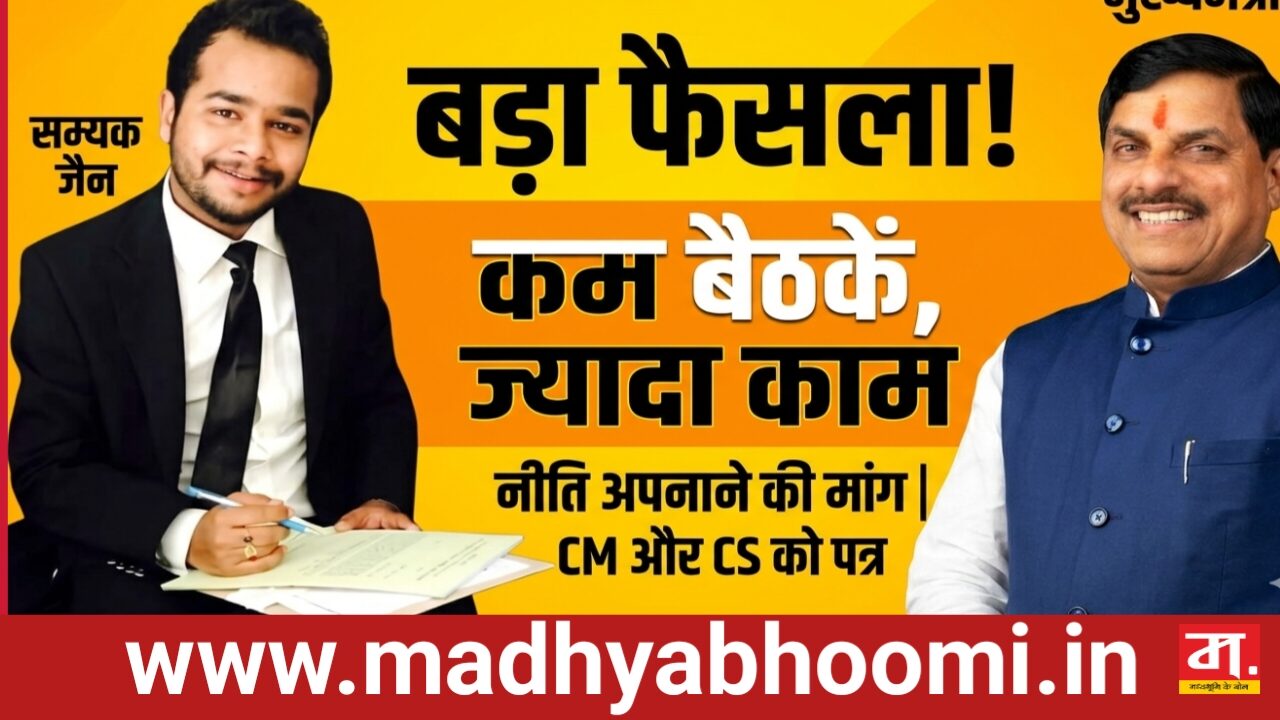 अधिवक्ता सम्यक जैन ने CM व मुख्य सचिव को लिखा पत्र, कम बैठकें, अधिक कार्य,नीति अपनाने की मांग