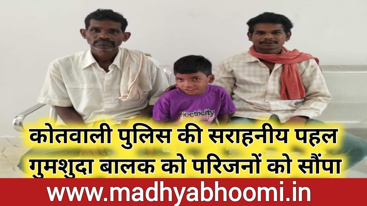 कोतवाली पुलिस की सराहनीय पहल, गुमशुदा बालक को परिजनों को सौंपा