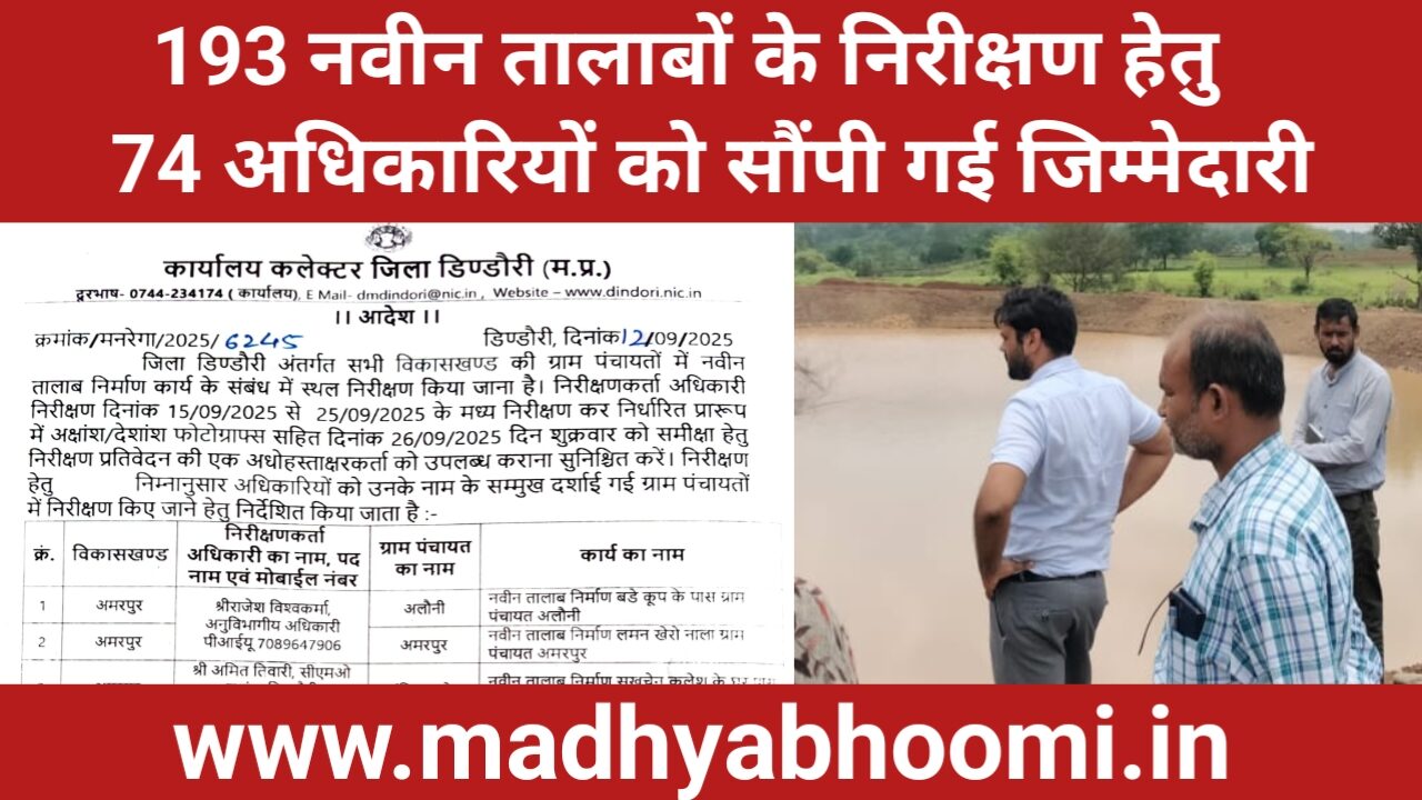 Dindori News: 193 नवीन तालाबों के निरीक्षण हेतु 74 अधिकारियों को सौंपी गई जिम्मेदारी