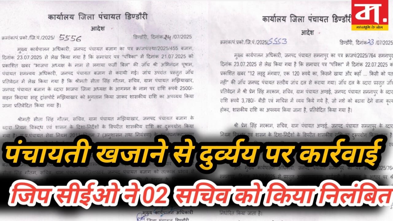 Dindori News: पंचायती खजाने से BJP जिलाध्यक्ष के आगमन पर व्यय और बीड़ी फूंकने वाले 02 सचिव सस्पेंड