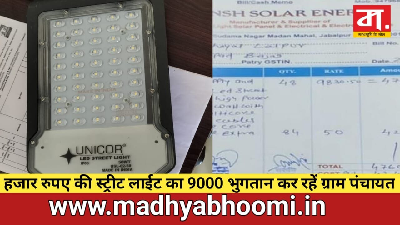 हजार रुपए की स्ट्रीट लाईट का 10 हजार भुगतान कर रहें ग्राम पंचायत, बेधड़क जारी है कमीशन का खेल