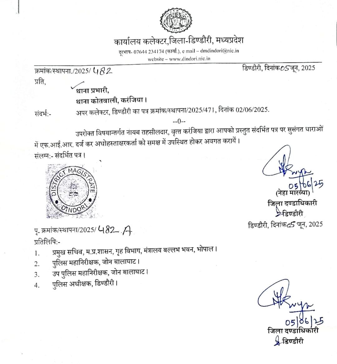 Dindori News: करंजिया थाना प्रभारी ने कानून को दिखाया ठेंगा, डीएम के आदेश के बाद भी दर्ज नहीं किया एफआईआर.?