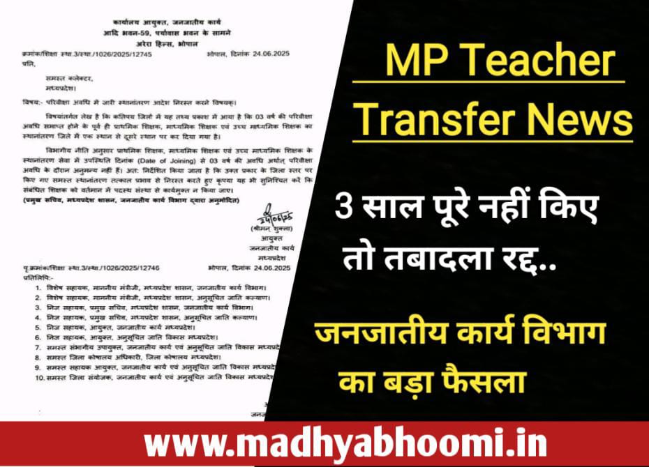 MP में नव नियुक्त शिक्षकों के तबादलों पर ब्रेक! परिवीक्षा अवधि पूरी किए बिना स्थानांतरित शिक्षकों को झटका, विभाग ने रद्द किए तबादले