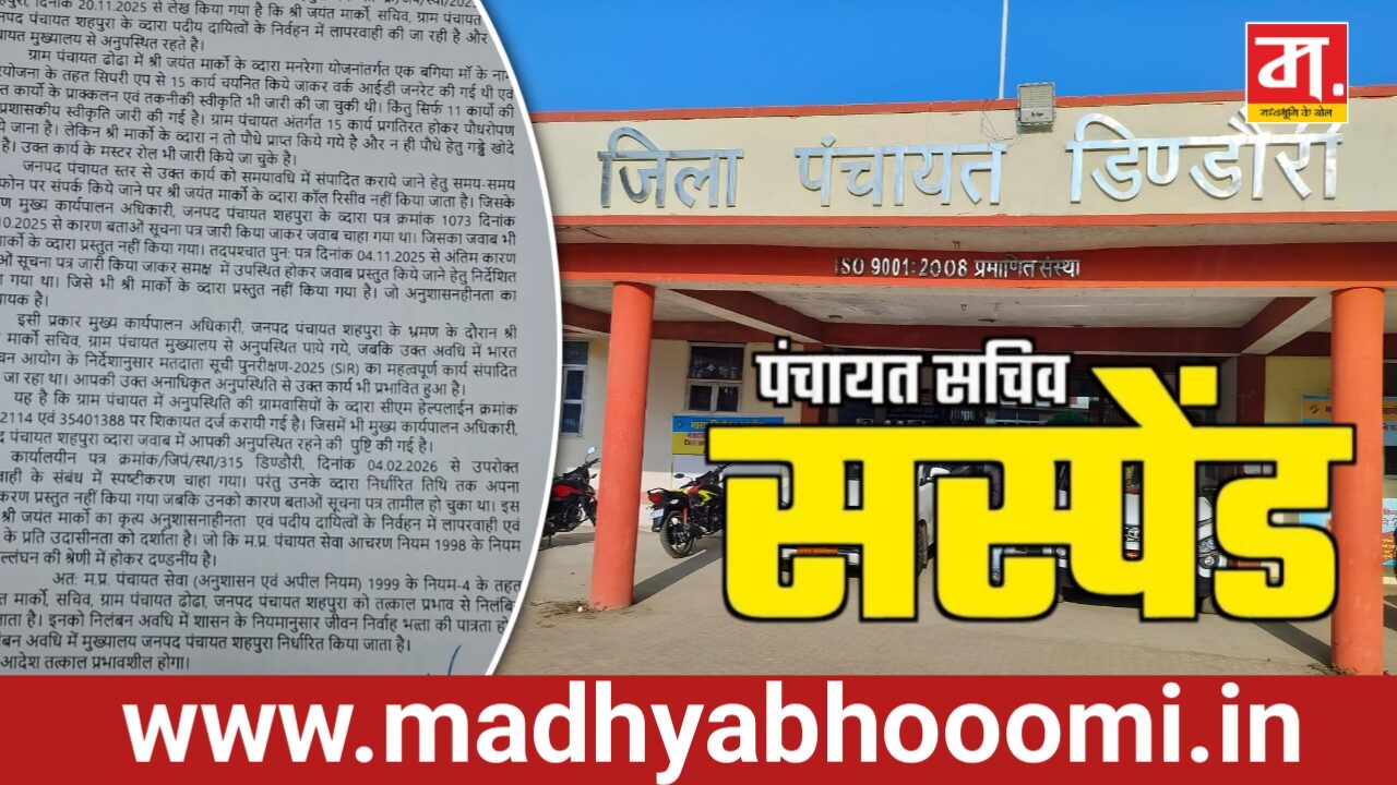 Dindori Today News: पंचायती कार्यों में लापरवाही बरतने पर पंचायत सचिव सस्पेंड..!