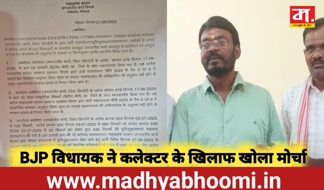 डिंडौरी जिले में शिक्षकों के एकजाई तबादलों पर शासन ने लगाई रोक, BJP विधायक ने कलेक्टर के खिलाफ खोला मोर्चा